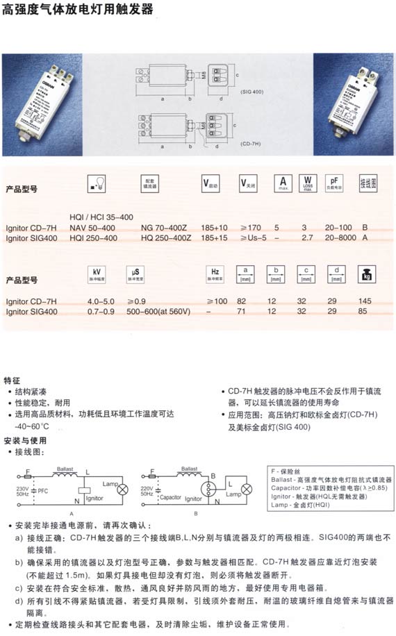 高強(qiáng)度氣體放電燈用觸發(fā)器